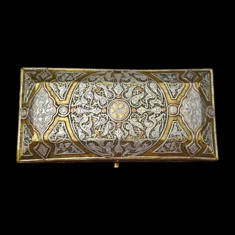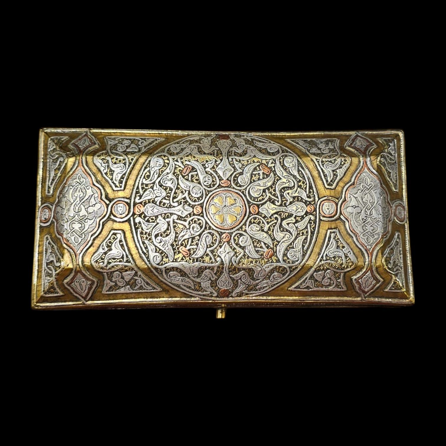 Syrian Damascene Brass Box Inlay With Gold, Silver and Copper